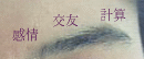 ![]() 上の絵のように眉の毛が上向に生えている人は「なにくそ!」と思いやすい。 下の絵のように眉の毛が下向に生えているとおとなしい。 両方の生え方をした眉の人は妙なところで突っかかるので誤解されやすい。 |