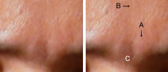 眉間のたてシワがくっきりある気難しい人 昔はハンコを押して決定でしたので印堂です また 命の宮と書いて命宮です その日の良い事も悪い事も色や気色線ででます 眉間をひとことでいうと日々の運の受け皿です 明るくきれいになのが快の日 暗かったり吹き出物がでたり汚いと不快の日 写真の眉間 =こげ茶色Cです=不快 眉間にフタする気色Aがあります B=縦の気色がありますが本日ダメ ![]() |