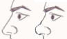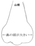 ![]() 鼻の頭が力強いと行動力があります。 自営業向きの鼻の形です。山根が細く小鼻が大きい人は、行動力があります(左図参照) 男性の場合、(女性は逆)右の小鼻で家庭内のことを見ます。左の小鼻で社会に対する行動力を見ます。左右の小鼻を比べます。家庭の金運と仕事の金運がわかります。