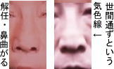 鼻が曲がっていると不運のときです。運が回復するとまっすぐになります 写真は男性 左ホホに斜めの茶色の気色が太いです 仕事のことで鼻が曲がりました ![]() 写真は同一人物です 鼻が曲がっているときホホからホホへの気色線はありません |