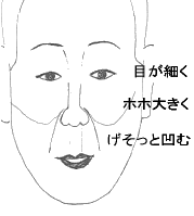 左の絵のような法令は、アルコール大好き人間です。法令が小鼻の横に張り出していますね。笑ったときに、横に張るのがよくわかります。 皇太子殿下がニコッとされたときを拝見してください。 |
