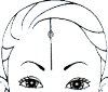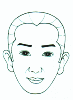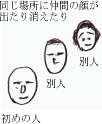 男性の想われ画相交差した線は気色線です 横の気色線上に両目があります ○の中に顔があります |