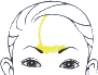右眉頭から右の主骨を通り天中の髪の生際に向かって曲線できれいな気色があります。眉頭は数珠つなぎでそこから太めの気色になっています。 【説明】交友という場所に画相の集団があり、待たれている、それに応えようとしています。 |
