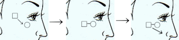 ![]() ◎画相は気色線の集まりですから、画相にくっついて気色線が走っていますこの気色線がどこへ繋がるか、どちらへ向いているかも要注意です。 ◎画相は、無関係な別人が何人も重なって見えることもあります。画相Aが画相Bの顔の一部を借用していることもあります |