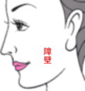 世間と自分自身の境目。世間の評判などを見ます。奥歯のあたりです。 障壁にシミができている人が時々います。世間からひどい目にあった人です。 この障壁の文字の壁の字あたりは泥棒に狙われていると色が汚くなります。 |
