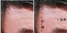 開運をするとき、初期は気色線が眉頭から上に上ります(願望を持つので)1.眉頭から同じ片方の(生え際)不時宮に気色線がつながります。 2.両方の不時宮に気色線がつながります。 開運したら、上記2つの気色線の間が美色にります。開運してしまうと額の正中線が美色になっています。当然、法令も白く光ります。 |