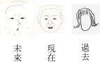 | 目鼻があって顔の輪郭がない (下記・画相の未来・現在・過去をご覧ください) |
