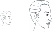 顔は1つで、顔の向きや目や口の向きが少しズレた歪んだ顔です。 たとえば、顔は内向き、目は前向き、口は外向きというように一貫性がありません 。 |