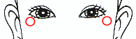 画相があるのが恋の場所か、カン骨かで判断が天と地ほど違います。恋の場所にあれば恋です。 カン骨(○のところ) にあれば画相の人のために働き(働かされ)ます。 さて、見分け方です。 恋の場所は顔の側面です。鏡を横目で見ます。 カン骨は正面です。鏡を正面にして見ます。 |