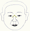 ![]() 山根を黄土色の気色がくの字になっています。黄土色がポイントです。 山根のことを別名で志(こころざし)の宮ともいいます。男性の左ホホ側は世間一般です。 何か望みごとがあったのを断念したとき出ます。 その人、どんなにか無念だったでしょう。 |